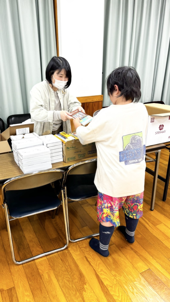 11月のTUNAGUが開催されました。 2025 12/07 お知らせ 2025年12月7日 ・11/10(月) 16:00〜17:00豊岡地区のパントリー(長泉寺にて)20世帯 子ども44人 ボランティア3人 ・11/12(水)18:30〜19:30藤沢地区パントリー(向原団地集会所にて)20世帯 子ども39人 ボランティア2人 お知らせ よかったらシェアしてね! URLをコピーしました! URLをコピーしました! 11月16日 扇町屋公民館文化祭に参加しました。